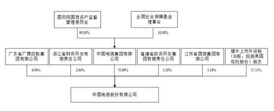 股权结构方面,截至招股意向书签署日,电信集团持有公司573.8亿股内资股股份,占公司总股本的70.89%,为公司控股股东。国务院国资委为公司的实际控制人。