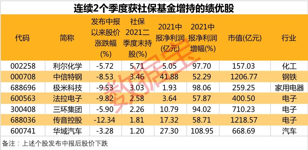 7股获社保基金连续2个季度增持