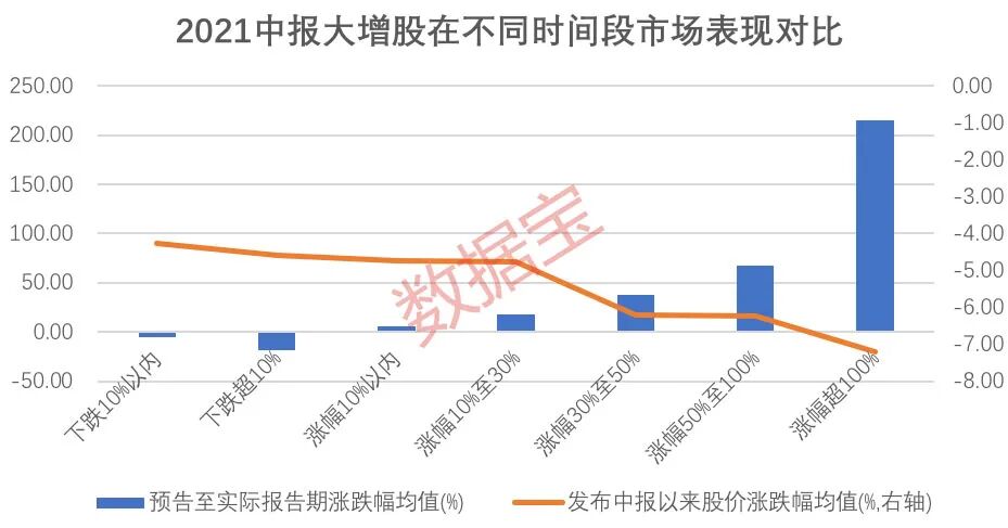 发布财报或重磅利好消息后,股价下跌在A股市场并不少见。数据宝统计显示,以2021中报数据来看,发布中报预告,且中报(正式报告)净利润大增50%以上,发布中报后股价下跌的公司有284家,六成以上个股自中报预告期至中报期(简称:区间),股价呈上涨状态,包括联创股份、华菱线缆、百川股份等,这3股区间涨幅均超过190%,其中华菱线缆为6月上市新股,公司是国内的特种专用电缆生产企业之一,上半年净利润同比增长180.62%,7月5日发布中报预告至中报期8月20日,股价涨幅高达267.61%,但8月20日以来,华菱线缆股价下跌12.38%。