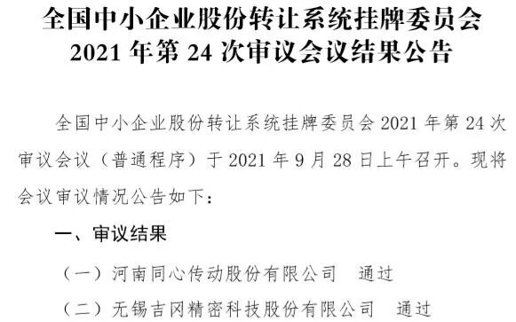 根据新三板挂牌委今日审议结果,同心传动、吉冈精密、大地电气3家公司的新三板小IPO申请分别获通过。