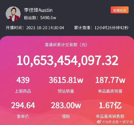 李佳琦一天直播成交破百亿