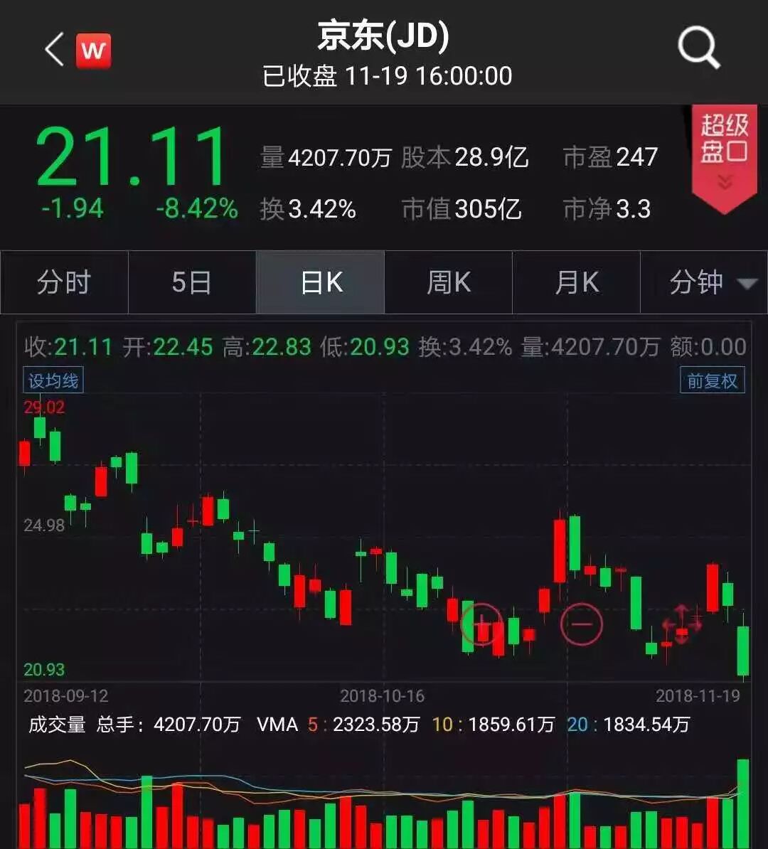 京东集团(JD)发布2018年第三季度业绩,京东第三季度营业总收入1048亿元,同比上涨25%,低于市场预期,为连续9个季度以来首次同比增速低于30%