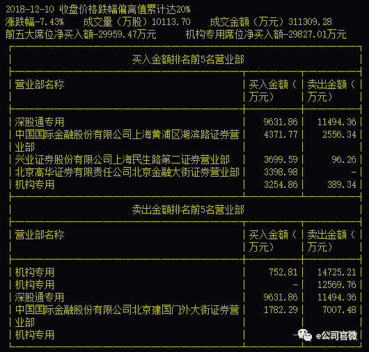 12月10日,华东医药龙虎榜显示,最近三天,三家机构席位合计大举减持华东医药3.35亿元,不过有一机构逢低吸纳3000余万元。而深股通席位一厢抛售1.15亿元,一厢又买入0.96亿元;中金公司北京建国门外大街营业部在减持0.7亿元的同时也少量买进0.18亿元。此外,中金公司上海黄浦区湖滨路营业部、高华证券北京金融大街营业部等纷纷买入逾0.3亿元。