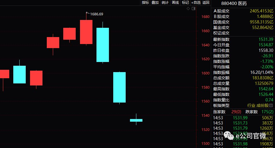 截至今天收盘,在最近连续三个交易日,乐普医疗、华东医药、辅仁药业、普利制药阶段下跌超过20%,而A股医药板块整体市值也蒸发近3000亿元。