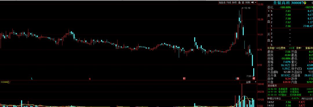 今年以来又一只闪崩的股票出现了。此前已经连续大跌的荃银高科,昨天再度低开低走,收盘跌停,股价创两年多以来新低。自此,在短短10个交易日内,荃银高科已经从高点13.19元跌至最新的7.56元,跌幅高达42.68%。这个数据意味着荃银高科的7423户股东(截至去年三季报),在短短10个交易日爆亏近43%。