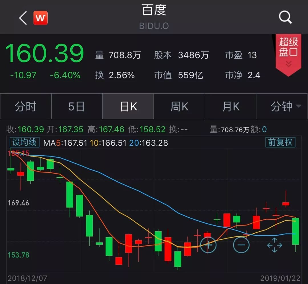 目前,百度收报160.39美元,市值一夜之间蒸发约38亿美元,约合人民币260亿元,仅剩约560亿美元。