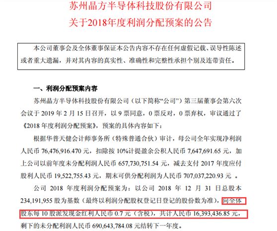 比如三家于今晚披露2018年报的上市公司晶方科技、精华制药、海翔药业均披露了2018年度的利润分配预案。