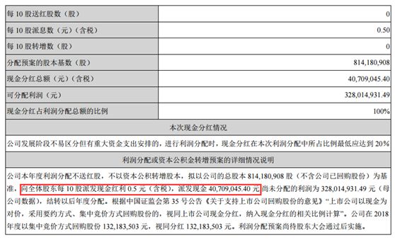精华制药则表示,公司利润分配预案为向全体股东每10股派发现金红利0.50元(含税)。公司还表示,在 2018 年度以集中竞价方式回购股份 1.32亿元,视同分红1.32亿元。