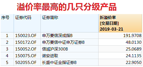 此外,也有一些高溢价额分级产品,也要提升风险,以下是截至3月21日溢价率最高的5只产品。