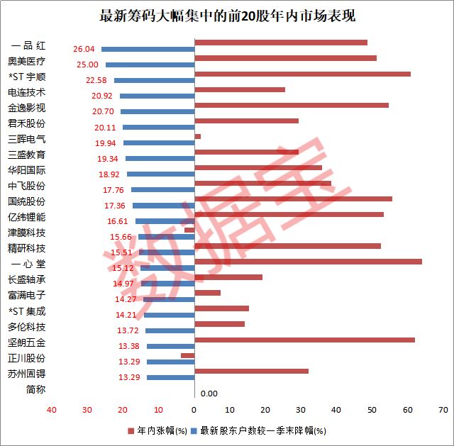 值得一提的是,股东户数下降超20%的6股全部跑赢沪指,而股东户数降幅居前的20股中,津膜科技和正川科技逆市下跌。