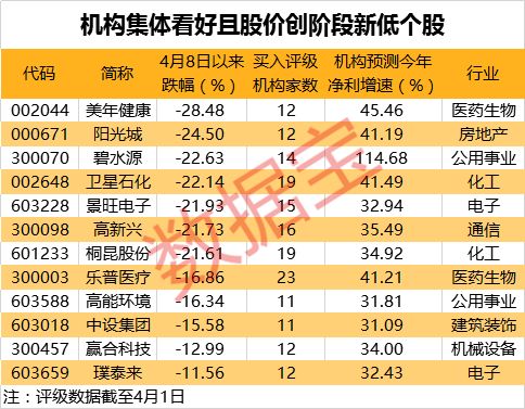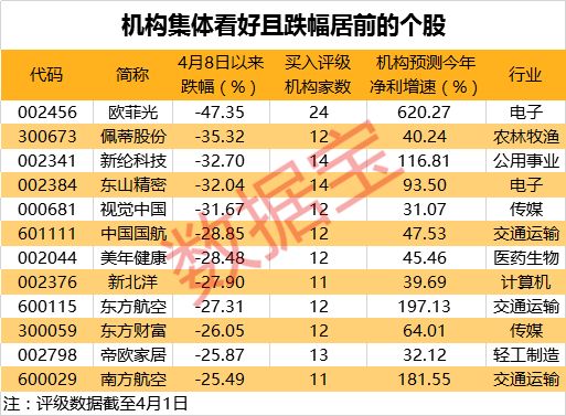 事实上,除乐普医疗以外,类似的股票还不少。数据宝统计显示,4月初获10家以上机构给予买入评级,机构预测今年净利润增幅超30%,且4月8日以来跑输沪指的股票合计有63只。