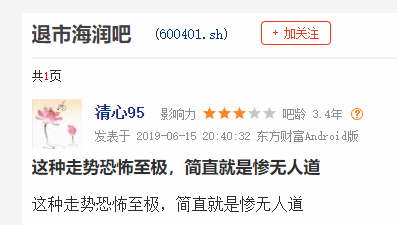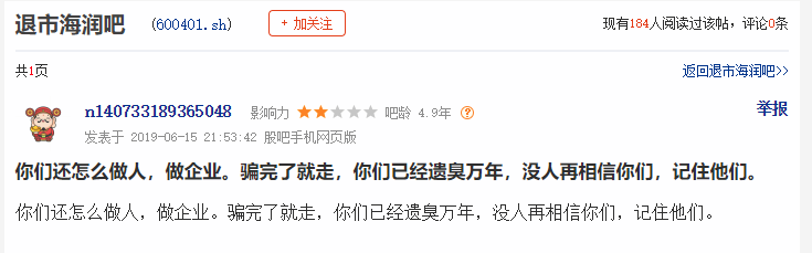 中弘退在去年的最后交易日,报0.22元,如今这个纪录已经被打破,这家公司叫退市海润,股价只有2毛钱。也就是说买一手海润只需要20块钱,还不够买两斤苹果!