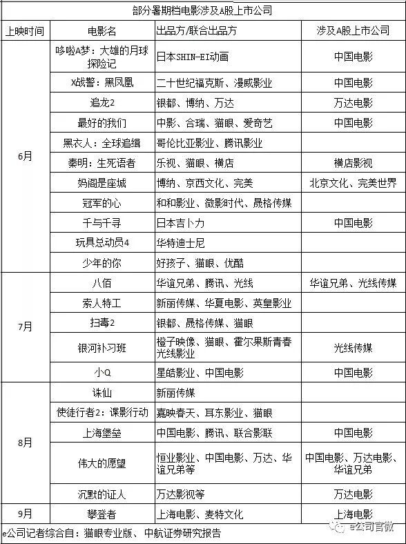 这些已定档的暑期档电影投资人中部分出现了A股上市公司的身影。