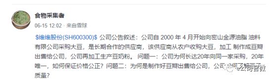 在2018年年报问询回函中,维维股份透露了预付款第一名仍是2016年被问询时交易所关注的“密山金源油脂油料有限公司”(以下简称“密山金源”)。维维股份称,2018年期末预付密山金源1.01亿元人民币,是采购大豆和豆瓣。公司自2000年4月开始向密山金源采购大豆,是长期合作的供应商,该供应商从农户收购大豆,加工制作成豆瓣出售给公司,公司再加工生产豆奶粉。