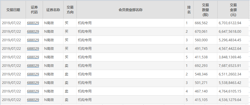 科创板南微医学首日龙虎榜:前五买入席位均为机构