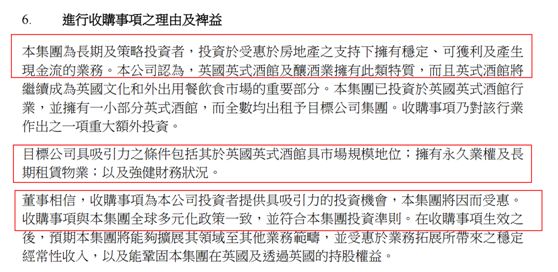 对于本次收购,长实集团更是明确表示,投资于受惠于房地产之支持下拥有稳定、可获利及产生现金流的业务,英国英式酒馆及酿酒业拥有此类特质。同时,这也是长实集团作为跨国公司,进行多元化投资的一部分。Greene King的吸引力包括其于英国英式酒馆具市场规模地位、拥有永久业权及长期租赁物业、以及强健财务状况。