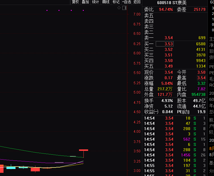 自证监会通报ST康美财务造假案以来,ST康美股价非但1分没跌,反而连续3个涨停。其中前2个为一字涨停,今日盘面虽一度反复,但至收盘ST康美仍顽强的收在了涨停的位置。
