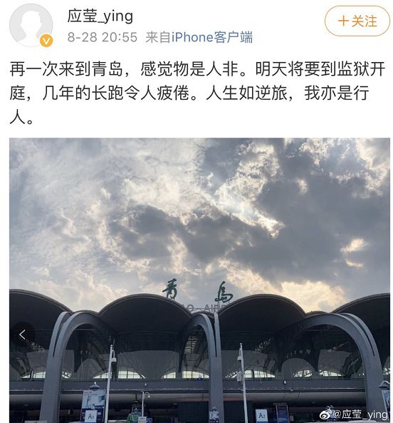 徐翔妻子28日到达青岛,晚间发微博称,“再一次来到青岛,感觉物是人非。明天将要到监狱开庭,几年的长跑令人疲倦。人生如逆旅,我亦是行人。”