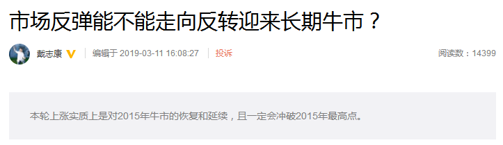 在淡出中国股市主流投资视野多年之后,今年上半年戴志康高调返场A股市场,今年3月份戴志康在微博上持续发声,表示强烈看好A股市场展开一轮长期上涨。乐观地表示A股市场将迎来一轮长期牛市,并且将“掀翻”2015年前一轮牛市的最高点,即5178点。