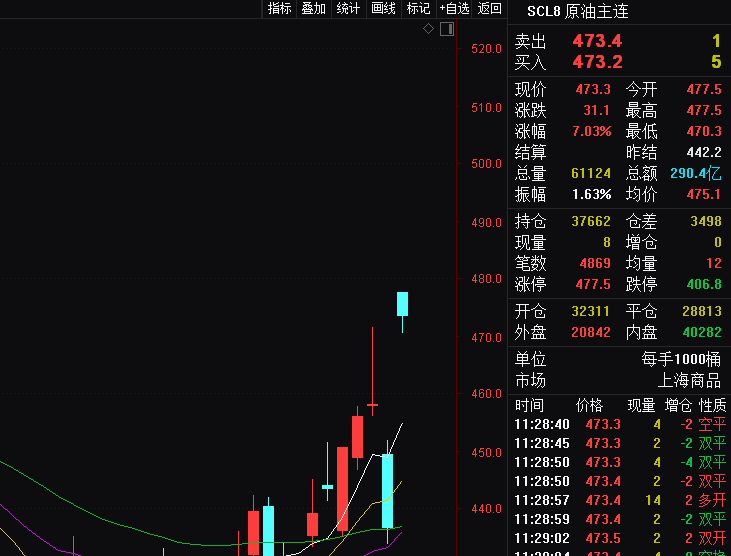 今日早盘,原油期货主力合约开盘涨停。之后打开涨停。