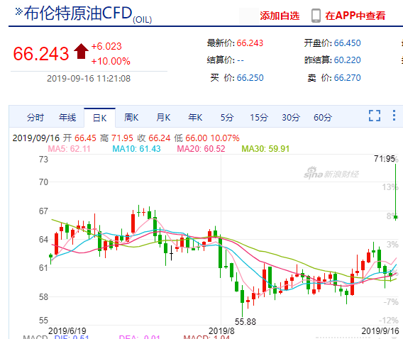 受上述消息影响,布伦特原油盘中一度涨近19%,NYMEX原油期货价格一度涨超16%,截至目前,布伦特及NYMEX原油价格涨幅均超10%。