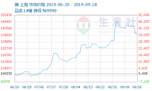 7月份以来,金属镍价格也开启了一轮疯狂涨势。7月8日至19日间,沪镍主力合约1911呈现大幅飙涨之势,从最低9.82万元/吨到19日盘中高点11.92万元/吨,一举突破一年新高,累计涨幅21.4%。其中,7月17日、18日,该主力合约分别暴涨达5.35%、5.94%。