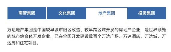 2018年万达集团完成架构调整,旗下四大业务正式变更为商管、文化、地产、投资,地产业务和商管业务逐渐分离。其中,万达地产主要承接从万达商管剥离出来的以及新开发的住宅业务,并负责拿地及其它地产开发业务;万达商管则主要负责万达持有商业物业(万达广场)的运营。