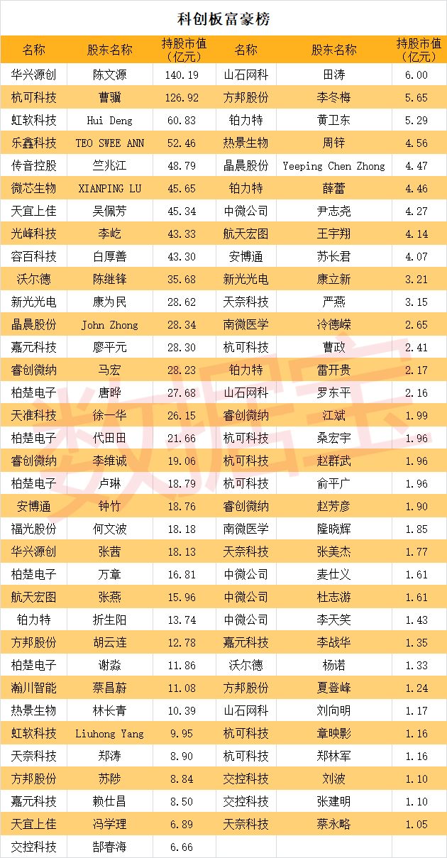 科创板目前已经有69位亿万富翁