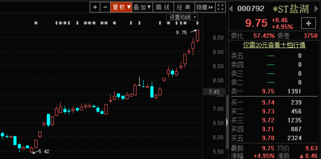 前三季度预亏近4.8亿元并不是终点,随着旗下两家子公司同时破产重整,*ST盐湖(000792)2019年或将面临巨亏!不过,8月中旬以来,*ST盐湖的股价却是一路上涨,累计涨幅近80%,昨日股价还以涨停价报收。