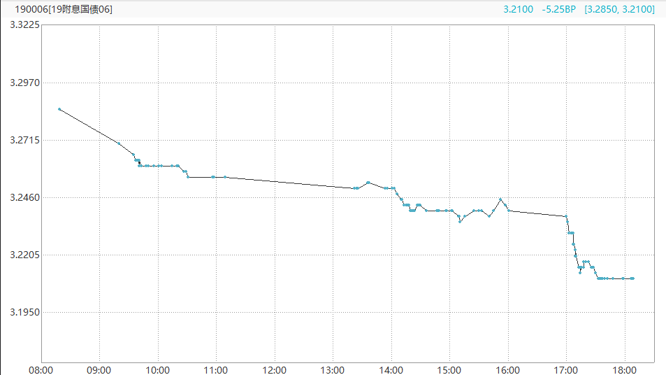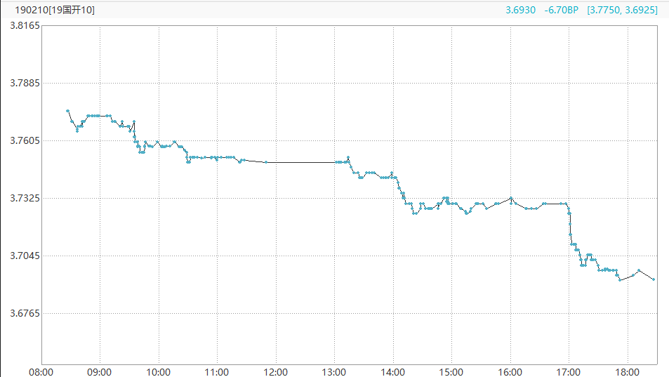 11日,银行间现券收益率加速下行,银行间现券收益率下行5-7个基点,股债跷跷板效应明显。其中,10年期国开活跃券190210收益率下行6.70基点报3.6930%,10年期国债活跃券190006收益率下行5.25基点报3.210%。
