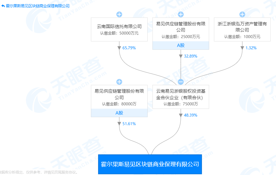 霍尔果斯保理经营范围包括,以受让应收账款的方式提供贸易融资;应收账款的收付结算、管理与催收;销售分户(分类)账管理等业务;从股东层面来看,易见股份直接持有霍尔果斯保理51.61%的股份,并通过云南易见浙银股权投资基金合伙企业(有限合伙)间接持有其15.92%的股份。