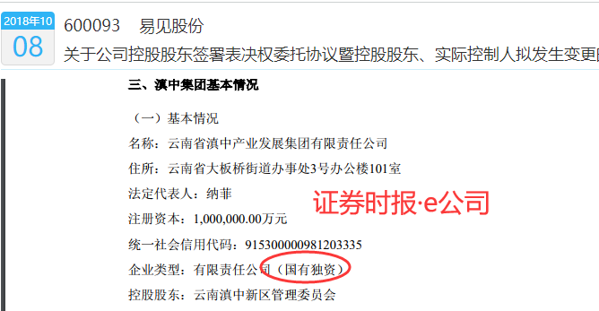 此次表决权委托完成后,滇中集团成为易见股份控股股东,持有上市公司29.4%的股份,实控人由冷天辉变更为滇中新区管委会。据滇中集团官网披露,该公司是按照云南省委、省政府为加快滇中新区发展,成立的省属国有企业。