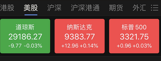 而昨晚美股三大股指冲高回落,道指抹去逾百点上涨,纳指、标普500盘中刷新记录高位后涨幅也有所收窄。截至收盘,道指跌0.03%报29186.27点,标普500涨0.03%报3321.75点,纳指涨0.14%报9383.77点。特斯拉涨幅回吐过半,日内一度涨逾8%,股价创历史新高,市值首次突破1000亿美元整数关口。