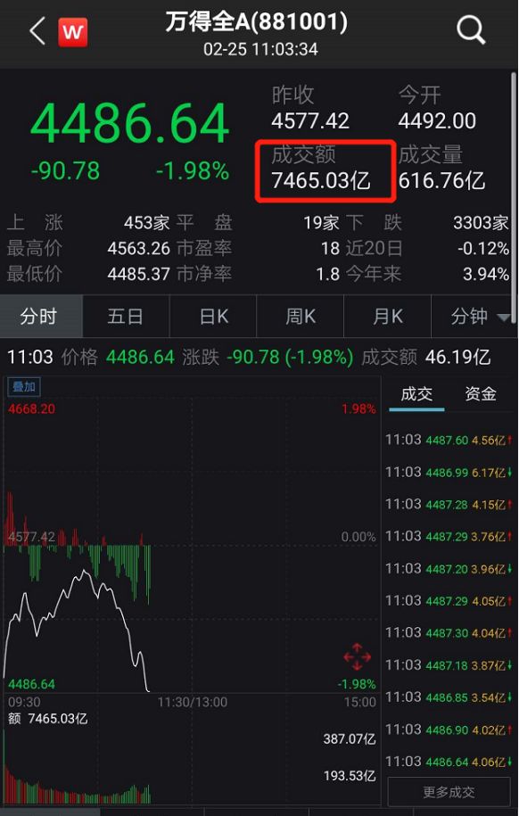 从成交量看,当天市场出现了放量大跌的态势。从万得全A数据看,截至上午11点左右,万得全A指数跌幅1.98%,成交额已经突破7000多亿。