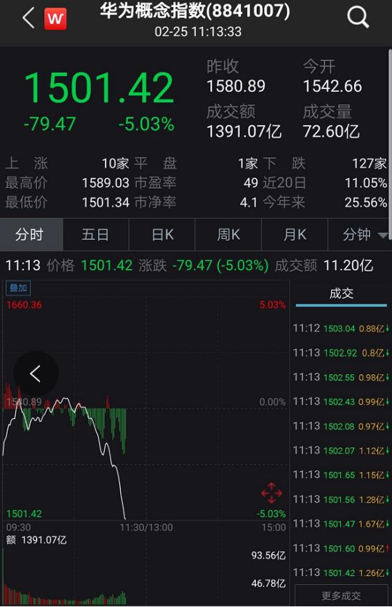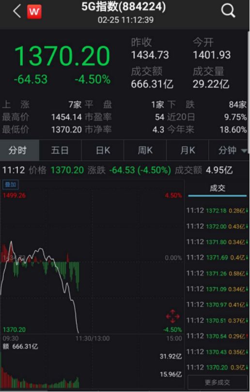 2月25日早盘,5G概念指数低开高走,盘中一度飙涨,不过市场调整压力下,5G概念指数随后有所回调。临近午盘,5G指数跌幅超4.5%。