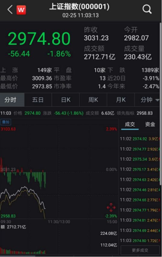 其中,上证综指跌幅迅速收窄,指数重新回归3000点之上。但随后指数再度失守3000点,截至11点左右,上证综指报收2974.80,跌幅1.86%。