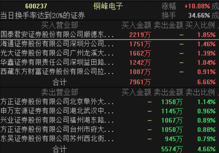 从龙虎榜看,铜峰电子大幅上涨中,成了游资们的游乐场,比如中信证券北京远大路营业部、华泰证券北京东三环北路、国泰君安北京通州新华西街营业部、东方财富证券拉萨东环路第二营业部等纷纷登台。尤其是2月25日,卖出席位第一位的长江证券武汉友谊路营业部,卖出金额5086.51万元,25日铜峰电子的总交易额为1.28亿元,单一个席位就卖出了近四成筹码。
