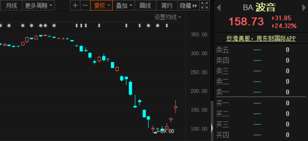 个股方面,波音大涨逾24%,已连续三日大幅收涨,累计涨近67%。据报道,美国参议院的一揽子援助计划包括向波音公司拨出数十亿美元。