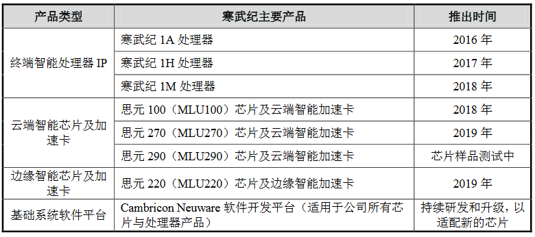 招股书显示,自2016年3月成立以来,公司快速实现了技术的产业化输出,先后推出了用于终端场景的寒武纪1A、寒武纪1H、寒武纪1M系列芯片、基于思元100和思元270芯片的云端智能加速卡系列产品以及基于思元220芯片的边缘智能加速卡。其中,寒武纪1A、寒武纪1H分别应用于某全球知名中国科技企业的旗舰智能手机芯片中,已集成于超过1亿台智能手机及其他智能终端设备中;思元系列产品也已应用于浪潮、联想等多家服务器厂商的产品中,思元270芯片获得第六届世界互联网大会领先科技成果奖。在人工智能芯片设计初创企业中,公司是少数已实现产品成功流片且规模化应用的公司之一。公司通过不断的技术创新和设计优化,实现了产品的多次迭代更新,产品性能的持续升级推动公司核心竞争力不断提升。