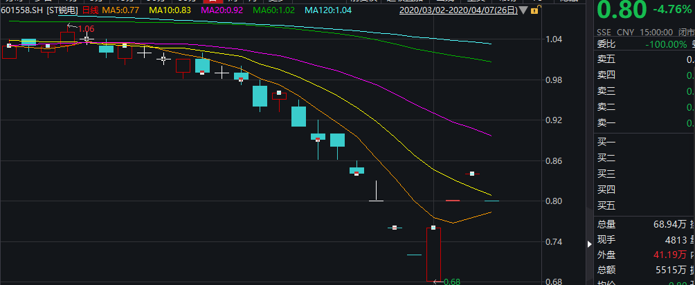 4月7日,ST锐电以跌停价开盘,之后被牢牢封死在跌停板上。截至收盘,ST锐电尚未打开跌停板,跌停价位上尚有超219万手卖单排队等待出逃。