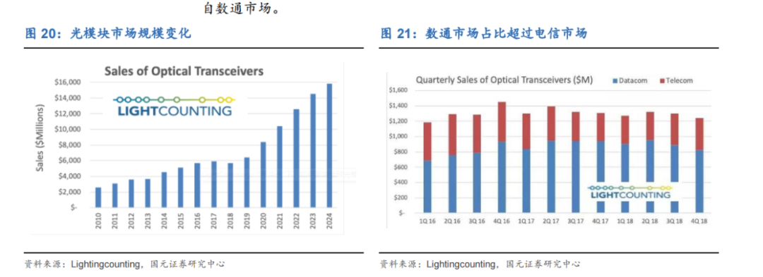 “光模块应用于数通(Datacom)和电信(Telecom)两大市场,电信市场又细分为无线网、传输网和接入网等领域。”中际旭创副总裁、董秘王军告诉证券时报·e公司,