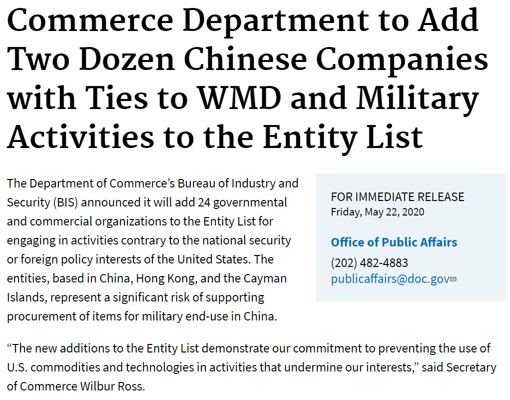 本次美国宣布33家中国企业被纳入实体清单的时间窗口比较微妙。