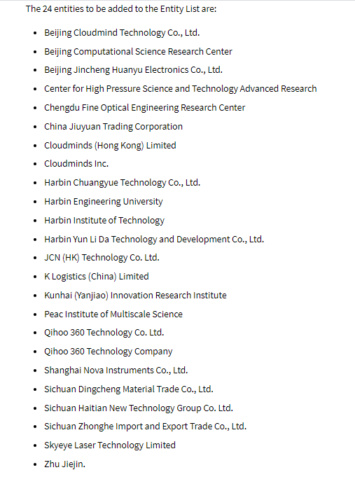 值得注意的是,与此前部分公司遭遇被列“实体清单”表示突然不同,本次被列入实体清单的企业中,整体表现得相对淡定。