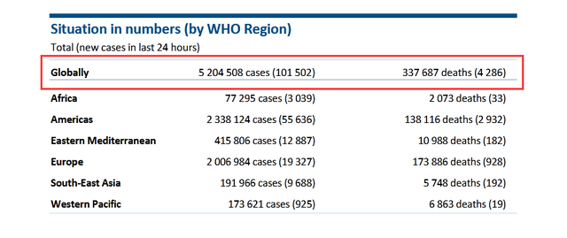 根据世卫组织24日最新发布的全球疫情数据,截至欧洲中部夏令时间24日上午10时(北京时间24日16时),过去24小时,全球新增新冠肺炎确诊病例101502例,累计5204508例。至此,全球已连续第4天单日新增过10万例。