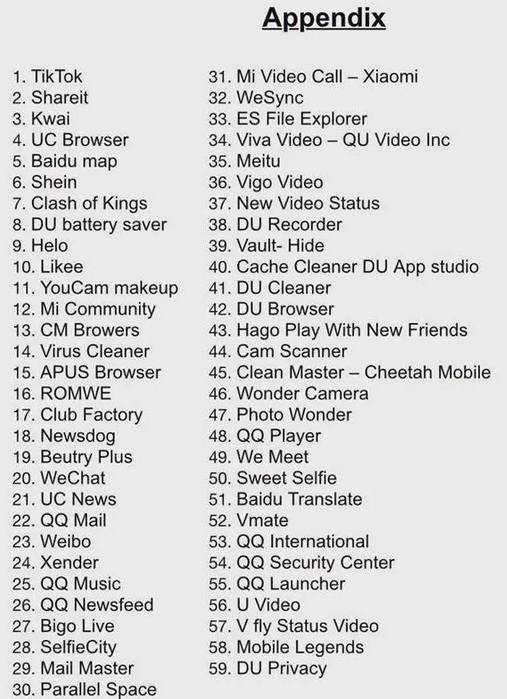 6月29日晚,印度电子和信息技术部(NIC)宣布,出于“安全”考度,禁止包括TikTok和微信在内的59款中国应用。