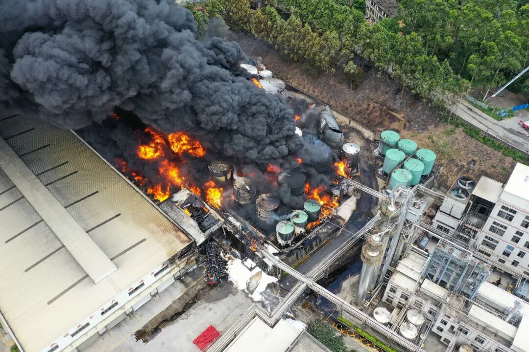 7月12日拍摄的福建龙岩卓越新能源股份有限公司火灾现场(无人机照片)图片来源:新华社